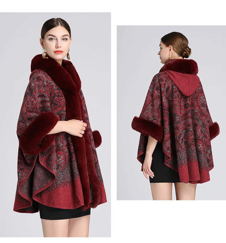 Discover the poncho with burgundy fur hood, an essential piece to face winter in style. ๐ Its deep burgundy shade and fur-trimmed hood add a touch of sophistication to your wardrobe. This poncho combines elegance and comfort, perfect for your outings in town or your winter evenings.