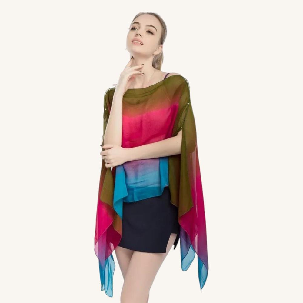Discover the Trio de Couleurs Summer Poncho, a unique piece that evokes the magic of summer evenings ๐ . Designed to bring a fresh touch to your wardrobe, this lightweight, flowy poncho is perfect for sunny days. With its vibrant colors and elegant design, it is the ideal accessory to enhance your look while protecting you from the sun.
